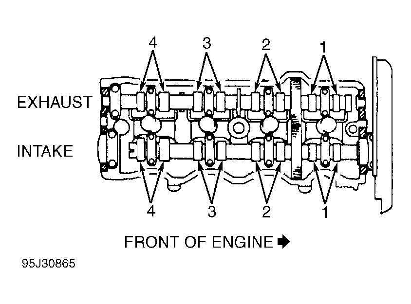 - Using feeler gauge, measure and record valve clearance between valve lifter and camshaft. Ensure valve clearance is within specification. See the 4-CYLINDER VALVE CLEARANCE SPECIFICATIONS table.