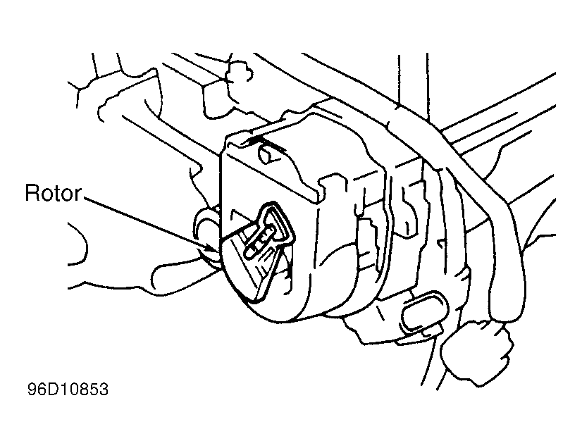 - Rotate crankshaft pulley clockwise until groove on crankshaft pulley aligns with "0" mark on timing belt cover to position cylinder No. 1 (front cylinder) at TDC on compression stroke. Ensure rotor is in proper position. See Fig 1. If rotor is not in proper position, rotate crankshaft pulley clockwise one full revolution.