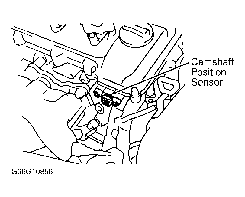 - Disconnect electrical connector from camshaft position sensor, located on rear corner of front cylinder head, just below valve cover. See Fig 1. Remove camshaft position sensor from cylinder head.