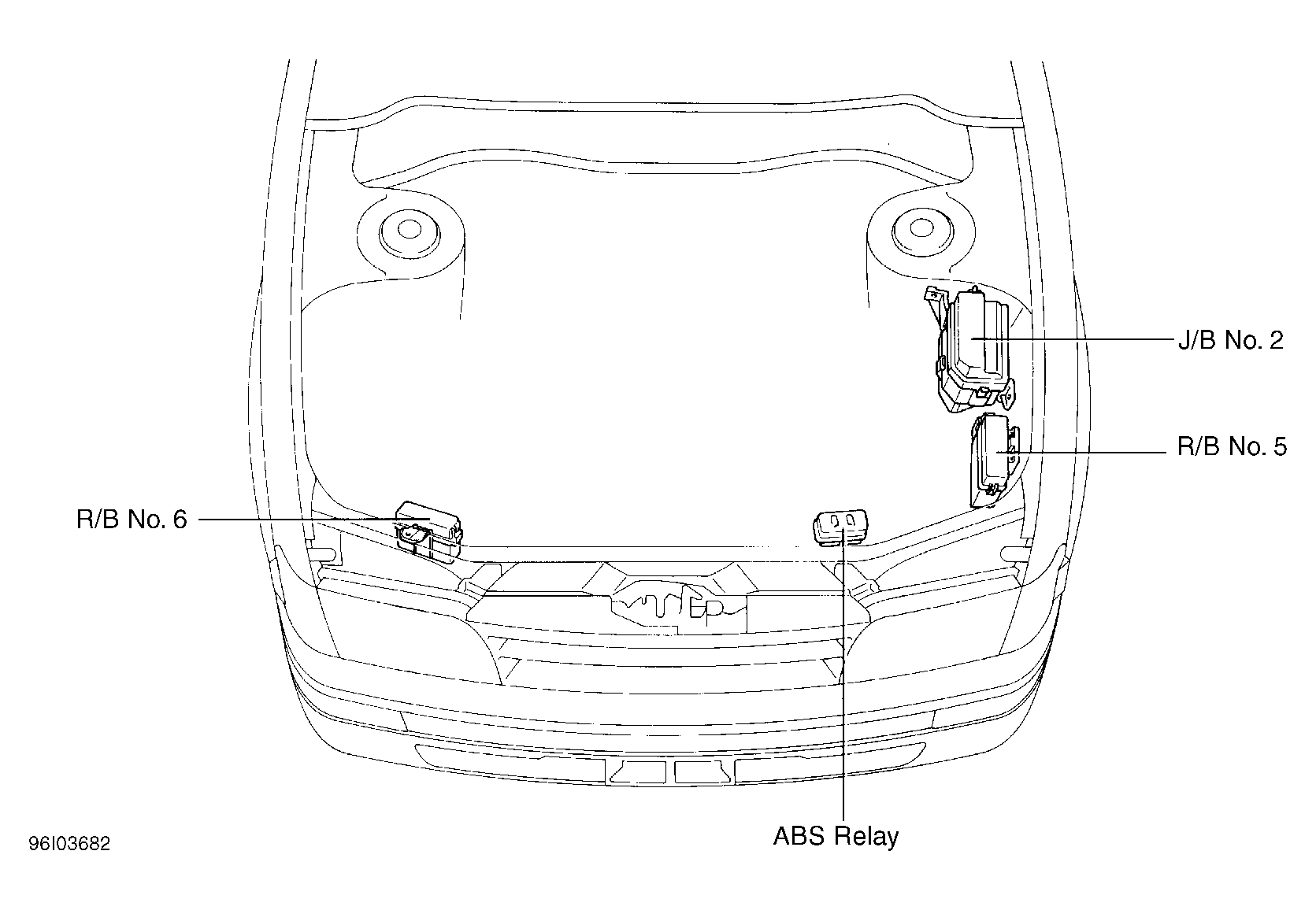 | R/B No. 5 | On left side of engine compartment. See Figure. |
