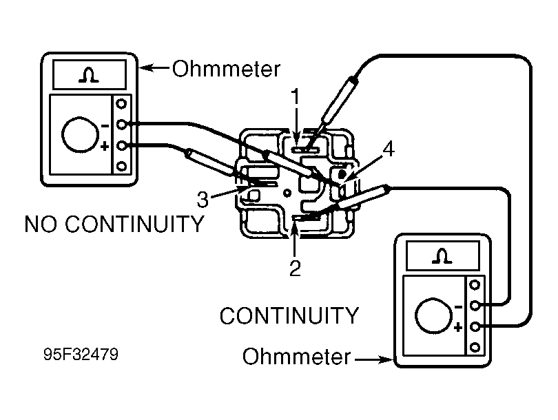 3. To test EFI main relay operation, apply battery voltage and ground to relay and use ohmmeter to check continuity between specified terminals. See Fig 1 and Fig 2. Replace EFI main relay if defective.