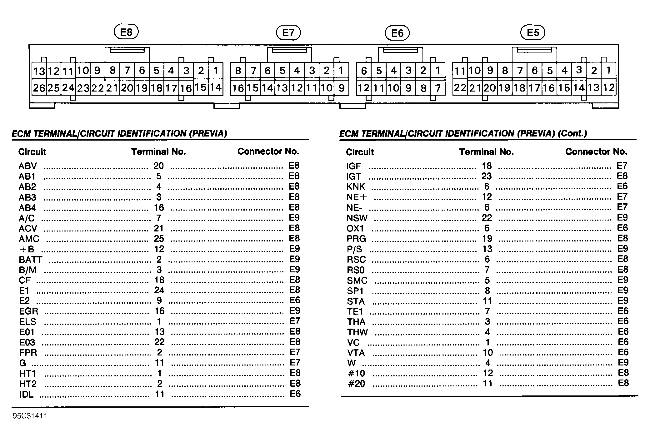 - Access ECM under driver's seat. Start and run engine. Connect a jumper wire between ground and terminal No. 5 (Red/Green wire) at ECM E9 connector. Supercharger magnetic clutch should operate when jumper wire is connected to ground. If clutch operates, go to step 7). If clutch does not operate, go to next step.