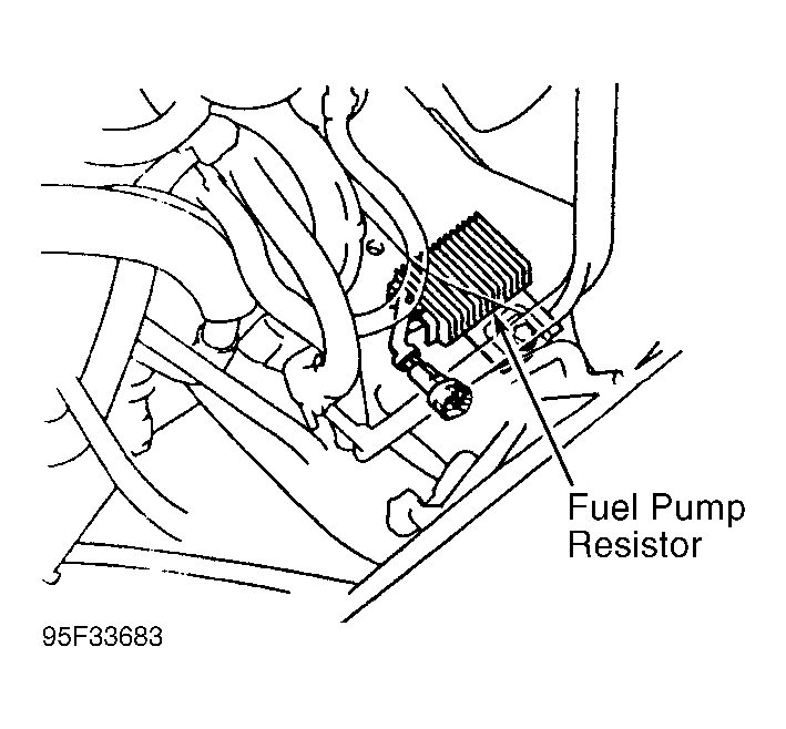 - Using ohmmeter, check resistance between electrical terminals on fuel pump resistor. Replace fuel pump resistor if resistance is not .58-.70 ohm at 68°F (20°C).