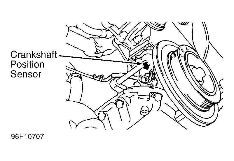 - Remove drive belt and generator. Disconnect electrical connector at crankshaft position sensor. Remove crankshaft position sensor.