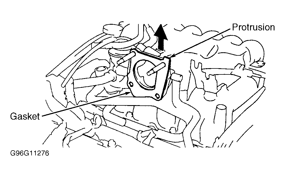 To install, reverse removal procedure using NEW gasket. Ensure gasket is installed with protrusion facing upward. See