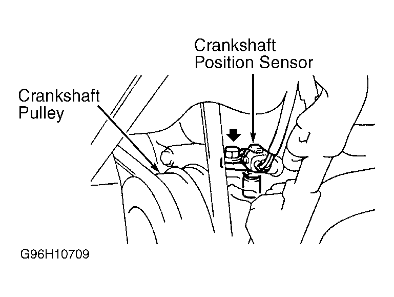 - Crankshaft position sensor is located just above crankshaft pulley. See Fig 1. Disconnect electrical at crankshaft position sensor. Remove crankshaft position sensor.