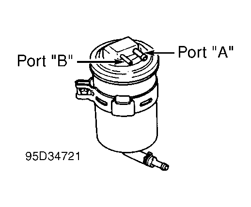 - Apply light air pressure to port "B". See Fig 1. Ensure air does not flow from any other ports on charcoal canister. Replace charcoal canister if defective.
