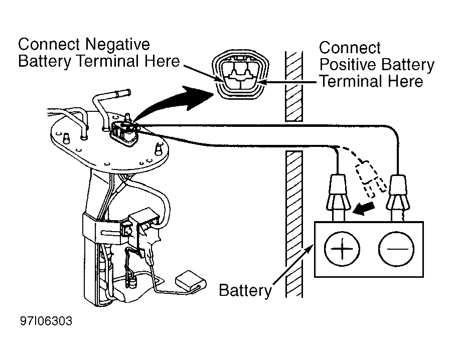 NOTE: Fuel pump may also be activated by connecting battery voltage to specified terminals on fuel pump. See Figure.