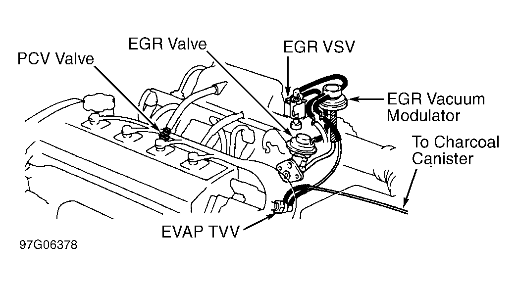 - Mark vacuum hose locations and disconnect vacuum hoses from EGR vacuum modulator. See Figure. Block ports "P" and "R" on EGR vacuum modulator. See Figure.NOTE: Ports "P" and "R" are the double ports on side of EGR vacuum modulator. Port "Q" is single port on side of EGR vacuum modulator.