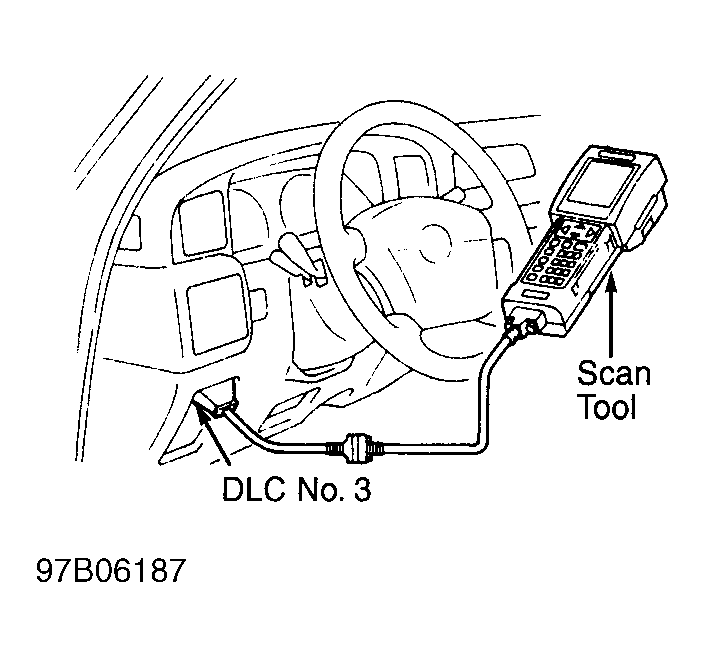 1. Connect scan tool to Data Link Connector (DLC) No. 3. See Figure. Turn ignition on with engine off. Turn scan tool on. Using scan tool manufacturer's instructions, check for DTCs and freeze-frame data.