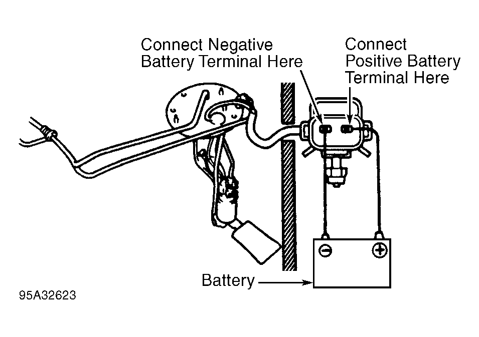 - Turn scan tool on. Select ACTIVE TEST MODE on scan tool. Using scan tool manufacturer's instructions, activate fuel pump and note fuel pressure. Fuel pressure should be within specification. See FUEL PUMP PERFORMANCE table.NOTE: Fuel pump may also be activated by connecting battery voltage to specified terminals on fuel pump. See Figure.