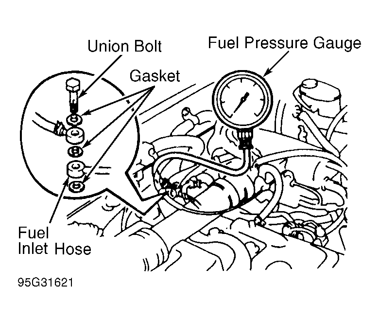 - Disconnect negative battery cable. Remove fuel pressure gauge. Reinstall union bolt using NEW gaskets. Tighten union bolt. Install negative battery cable. Recheck for fuel leaks.