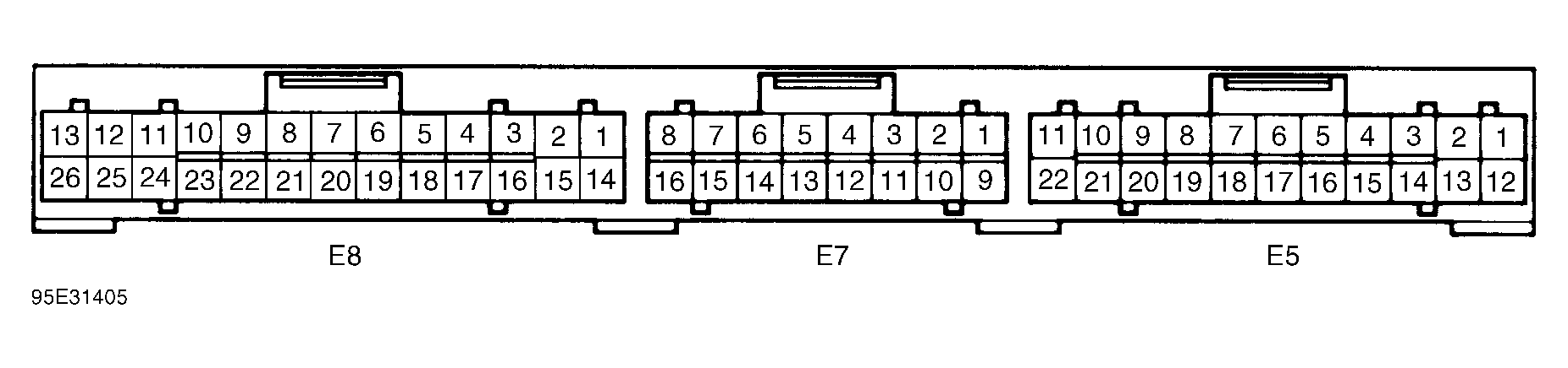 - Remove jumper wire. Turn ignition off. Access ECM behind glove box. Connect jumper wire between terminals No. 3 (Pink wire) and No. 9 (Brown/Black wire) at ECM E7 connector. See Figure. Turn ignition on.