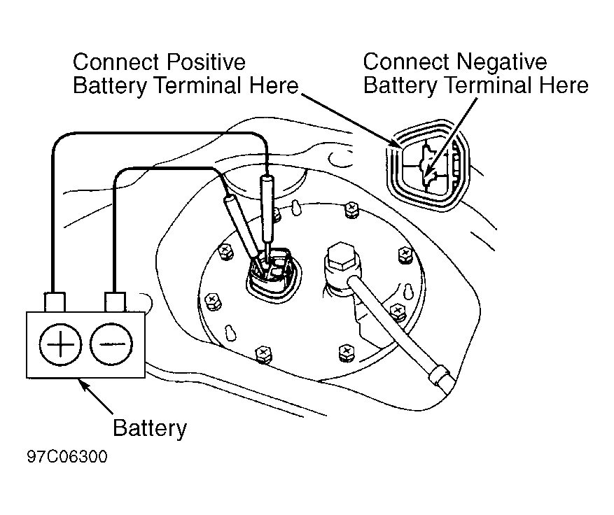 - Turn scan tool on. Select ACTIVE TEST MODE on scan tool. Using scan tool manufacturer's instructions, activate fuel pump and note fuel pressure. Fuel pressure should be within specification. See FUEL PUMP PERFORMANCE table.NOTE: Fuel pump may also be activated by connecting battery voltage to specified terminals on fuel pump. See Figure.