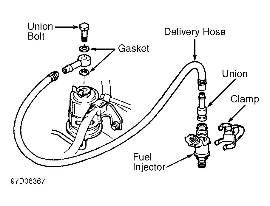 NOTE: Fuel injector is connected to fuel filter, as fuel pressure regulator is located on the fuel pump in the fuel tank.