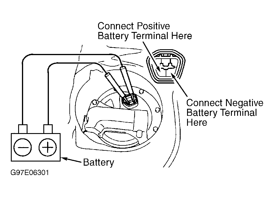 10. Install negative battery cable. Check for fuel leaks by using scan tool to energize fuel pump.