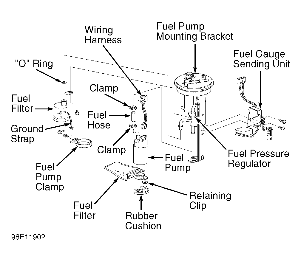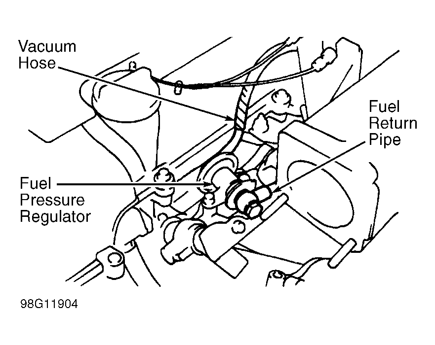 On non-turbo models, fuel pressure regulator is mounted on the fuel pump assembly in the fuel tank. See Figure. On turbo models, fuel pressure regulator is located on front end of fuel rail, near throttle body. See Figure.