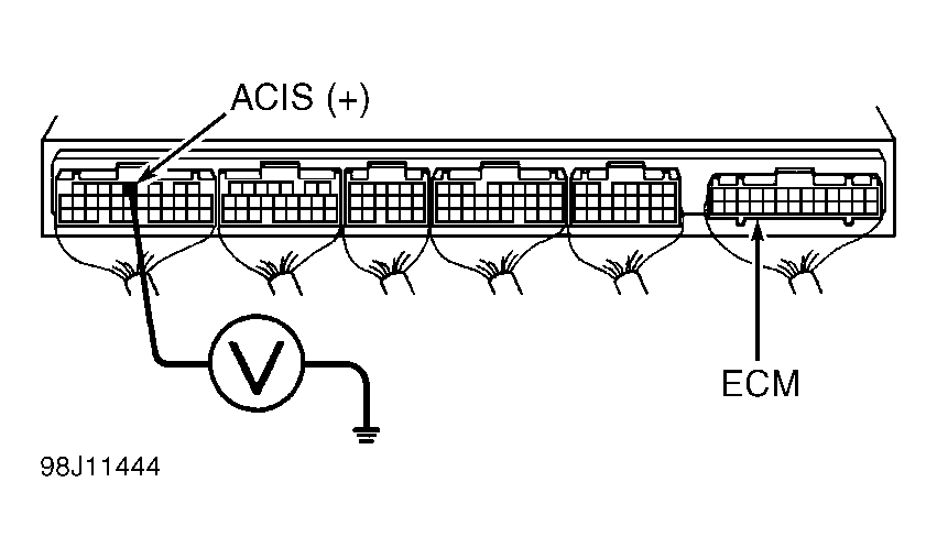 - Turn ignition on. Using voltmeter, check voltage between ground and ACIS (+) terminal (Green/Yellow wire) on ECM. See Fig 4. This is the wire from ECM to intake air control valve VSV.