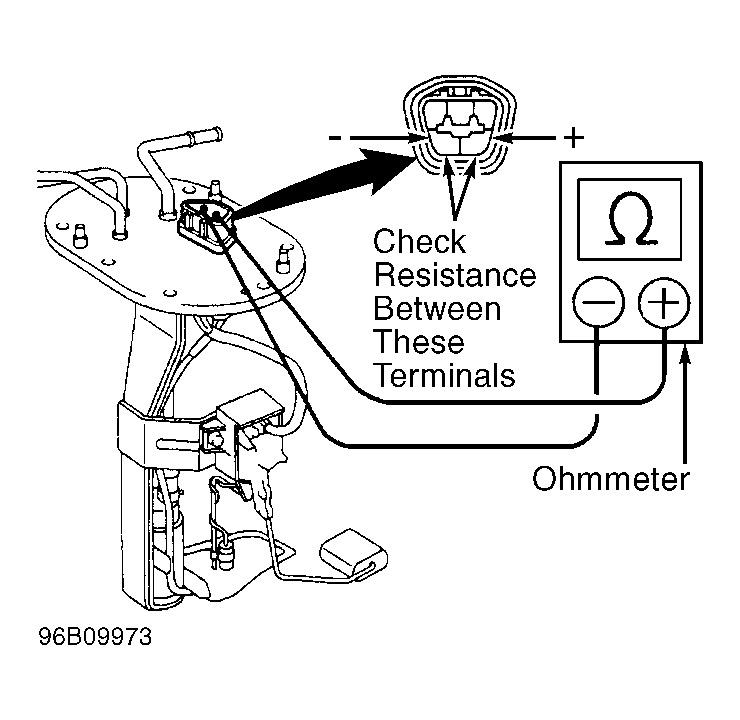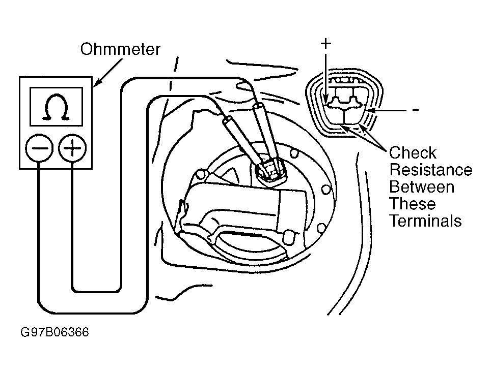 - To test fuel pump operation, apply battery voltage and ground to (+) and (-) terminals on electrical connector or fuel pump. See Fig 1-Fig 6 . DO NOT apply battery voltage to fuel pump for more than 10 seconds. Replace fuel pump and/or lead wire (if equipped) if fuel pump fails to operate.