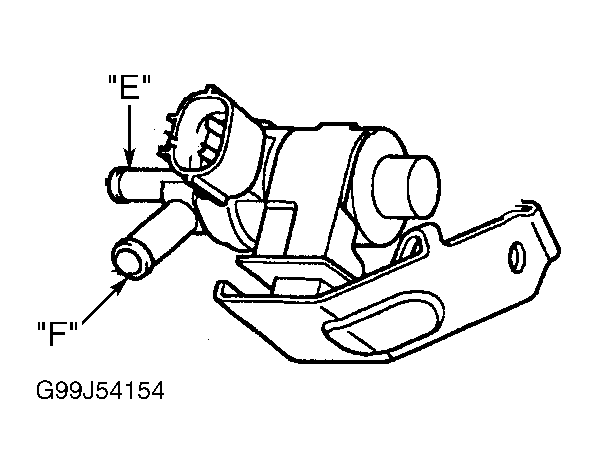 - Disconnect EVAP VSV vacuum hoses. Turn ignition on. Access ECM behind glove box. Connect a jumper wire by backprobing between ground and terminal No. 7 (Light Green wire) at ECM harness connector E10. See Figure. With jumper wire connected air applied to EVAP VSV port "E" should flow from port "F". See Fig 1. Remove jumper wire. With jumper wire removed, air applied to EVAP VSV port "E" should not flow from port "F". If EVAP VSV functions as specified, go to step 16. If EVAP VSV does not function as specified, go to next step.