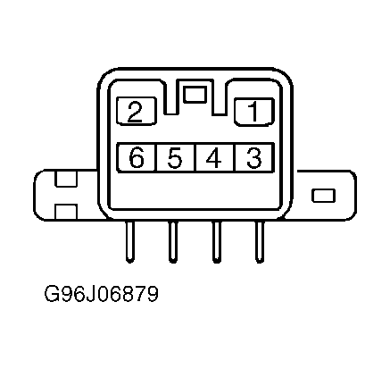 Disconnect rear wiper relay. Connect fused jumper between battery voltage and relay terminal No. 3. Connect another jumper wire between ground and terminal No. 6. See Figure. Connect positive lead of DVOM to relay terminal No. 5 and negative lead to terminal No. 6. Voltage should be zero. Move DVOM positive lead from terminal No. 5 to terminal No. 4. Observe DVOM. Reading should change from zero volts to battery voltage. If voltage readings are not as specified, replace relay.