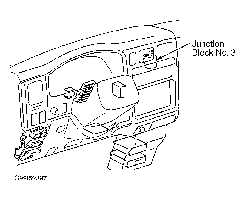 3. Check for open in wiring harness and electrical connectors between ECM and junction block No. 3. See appropriate wiring diagram in STARTERS article in STARTING & CHARGING SYSTEMS. ECM is located behind glove box. For illustration of ECM location, see THEORY & OPERATION article. Junction block No. 3 is located behind instrument panel. See Fig 1.