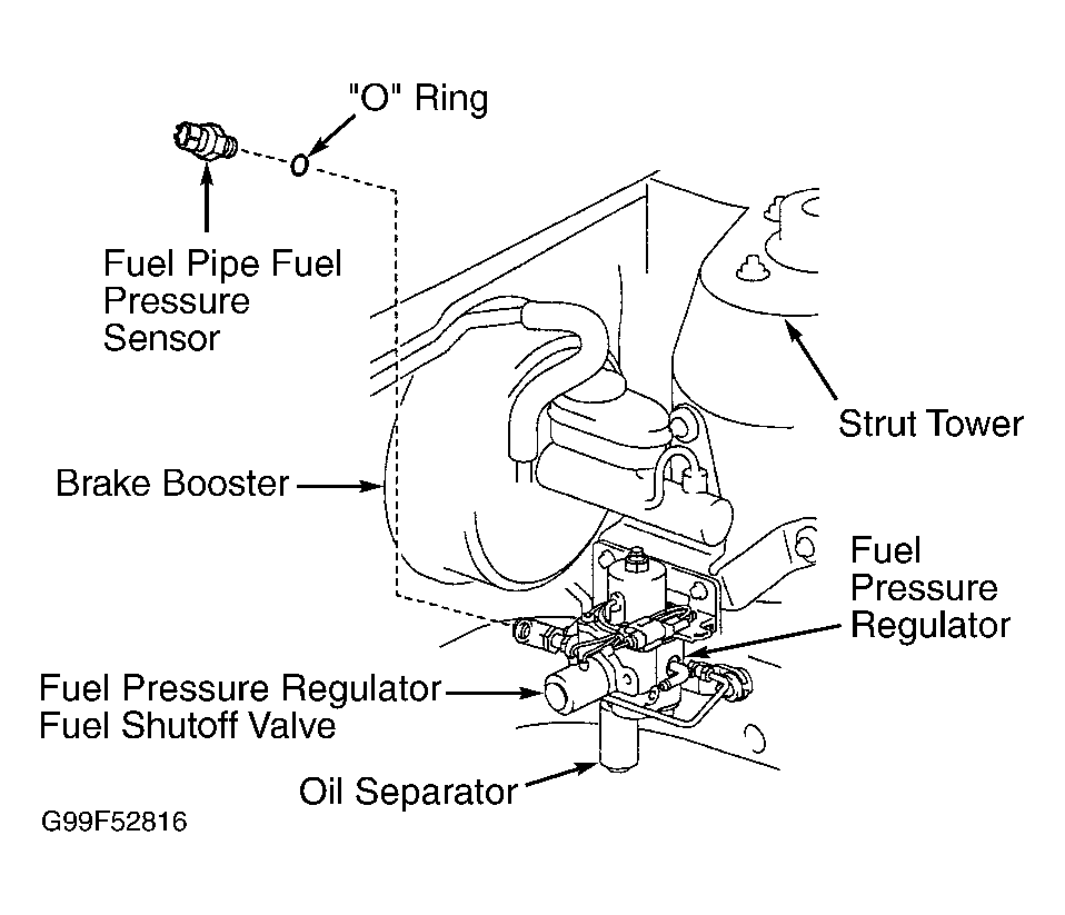 7. Check for open or short in wiring harness and electrical connectors between ECM and fuel pipe fuel pressure sensor. Fuel pipe fuel pressure sensor is located near fuel pressure regulator located in fuel line between fuel tank and fuel rail, just below brake booster. See Fig 1.