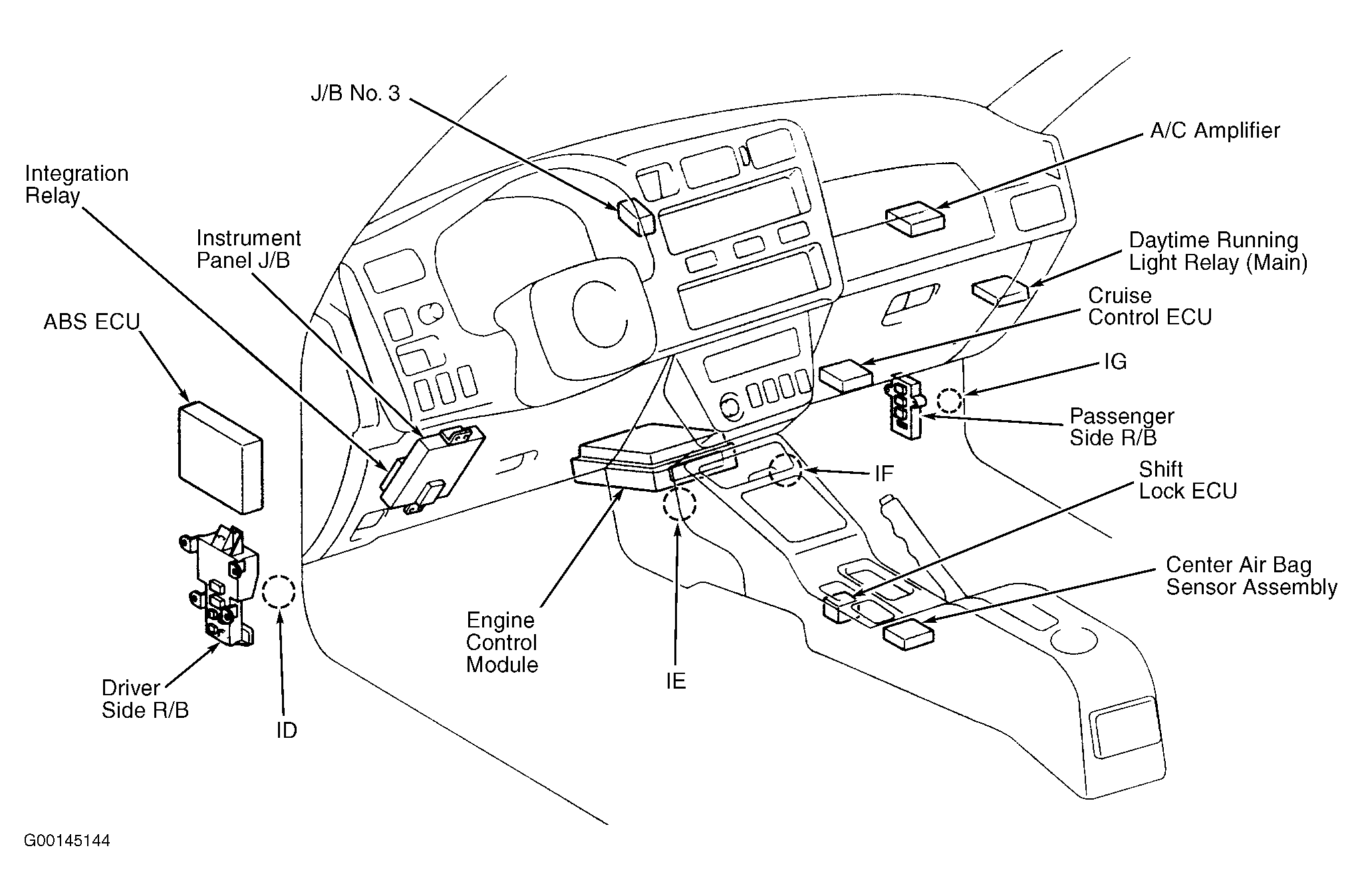 | J/B No. 3 | Behind center of dash. See Figure. |