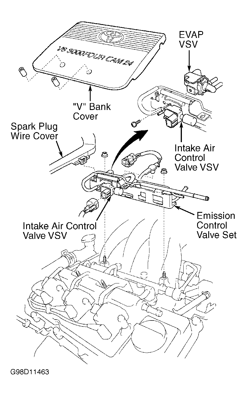 - On Avalon, Camry, Camry Solara and Sienna, remove "V" bank cover on top of engine for access to fuel injectors. See Figure, Figure and Figure