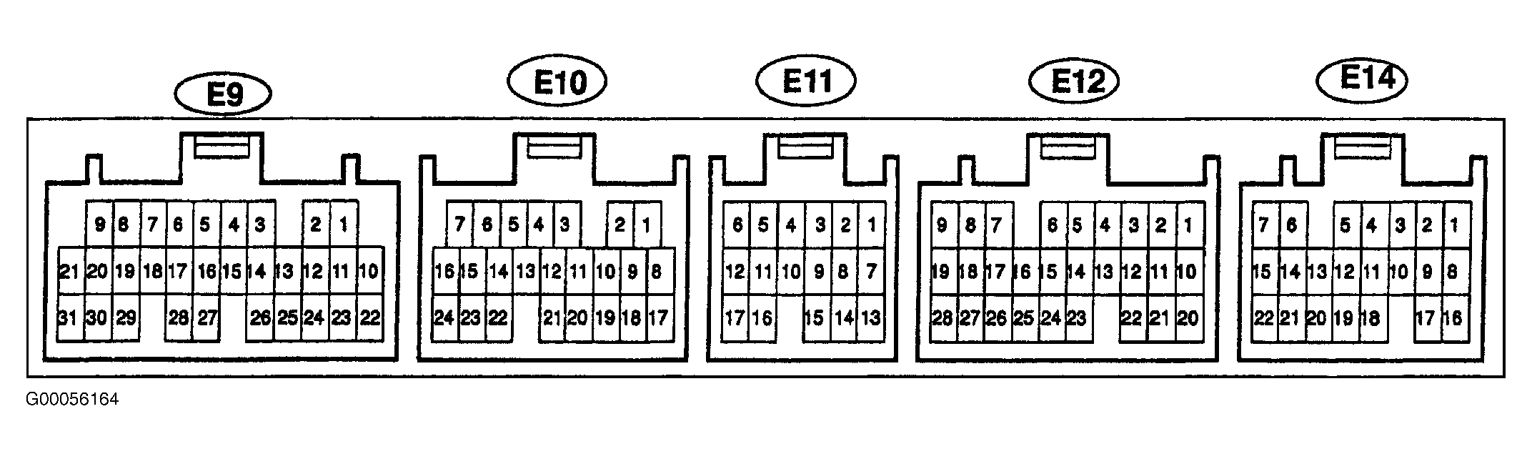 - Remove glove box. Turn ignition on. Measure voltage between terminal No. 1 (White/Blue wire) of ECM 22-pin harness connector E14 and terminal No. 17 (Brown wire) of ECM 24-pin harness connector E10. SeeFigure. If 9-14 volts are present, circuit is okay at this time. If symptoms are still present, perform SYMPTOM TESTS under TROUBLE SHOOTING. If voltage is not as specified, go to next step.