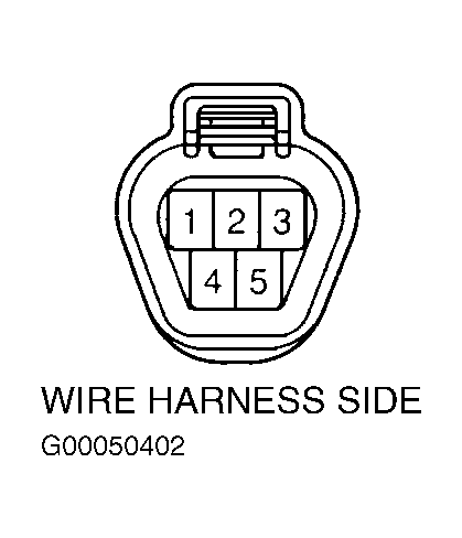Disconnect 5-pin power window motor harness connector located in power window regulator assembly. Connect positive ohmmeter lead to connector terminal No. 2 and negative ohmmeter lead to connector terminal No. 5. See Figure. Connect positive battery lead to connector terminal No. 1 and negative battery lead to connector terminal No. 4. Ensure continuity exists when window goes up. Ensure no continuity exists when window is in fully closed position. If operation is not as specified, replace motor. See POWER WINDOW MOTOR  under REMOVAL & INSTALLATION.
