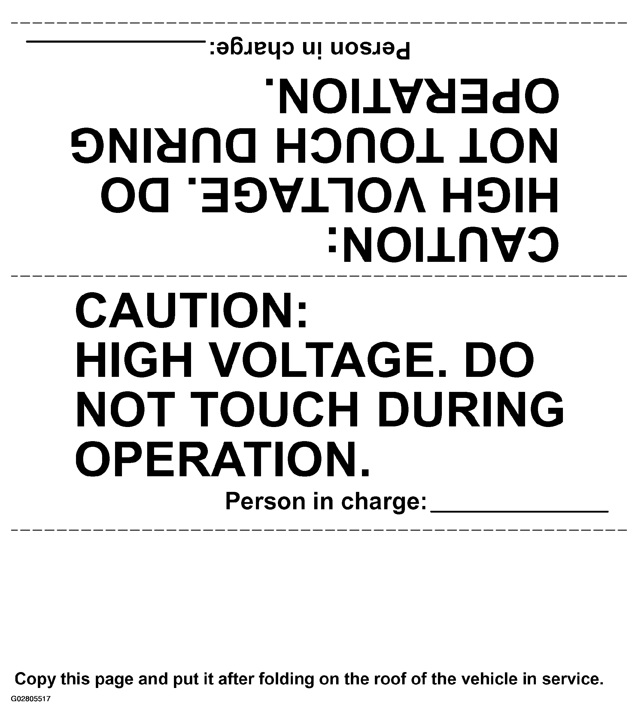 11. Call other engineers' attention to the vehicle which high-voltage system is being inspected or repaired by hanging a "High Voltage Operation in Progress. Do Not Touch" sign (See Fig 3).