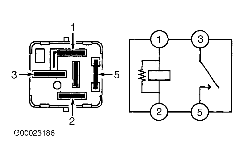 - Note identification of electrical terminals on headlight relay. See Fig 1. Using ohmmeter, check that no continuity exists between terminals No. 3 and 5 on headlight relay. Check that continuity exists between terminals No. 1 and 2 on headlight relay.