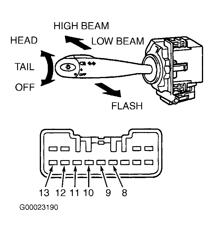Using ohmmeter, check that no continuity and continuity between specified electrical terminals on headlight control switch in relation to headlight control switch position. See HEADLIGHT CONTROL SWITCH CONTINUITY table. See Fig 1. Replace headlight control switch if defective. See HEADLIGHT CONTROL SWITCH under REMOVAL & INSTALLATION.HEADLIGHT CONTROL SWITCH CONTINUITY