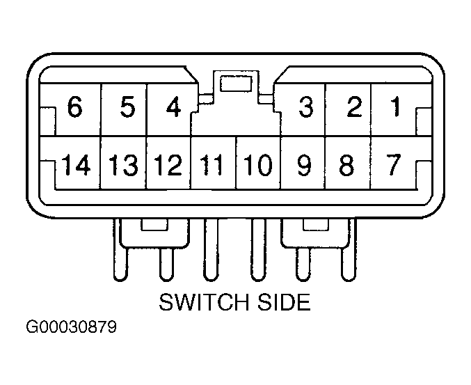 Disconnect 10-pin or 14-pin power window master switch connector. See Fig 1 and Fig 2 . Continuity should exist between all terminals listed in table. See POWER WINDOW MASTER SWITCH CIRCUIT TEST (TACOMA) table. If continuity is not as specified, replace power window master switch. See POWER WINDOW SWITCH under REMOVAL & INSTALLATION.