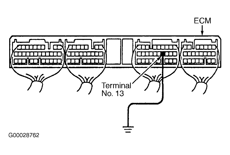- Remove glove box for access to Engine Control Module (ECM). For illustration of ECM location, see THEORY & OPERATION article. Turn ignition on. Connect jumper wire between body ground and terminal No. 13 (Blue wire) at ECM electrical connector E9. See Fig 2. This is the CCV terminal at ECM which is the ground circuit for the CCV VSV. Go to next step.