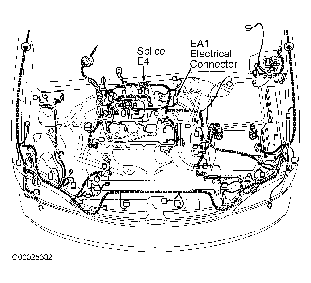 NOTE: If DTCs P0110, P0115 and P0120 are output simultaneously, the E2 sensor ground circuit at terminal No. 18 (White wire) at ECM electrical connector E11 may be open. See WIRING DIAGRAMS article. For ECM electrical connector terminal identification, see Figure. It may be necessary to check White wire between splice E4 and terminal No. 18 at ECM electrical connector E11. Splice E4 is located near firewall and the wire color changes from White to Brown at this splice. See Figure.