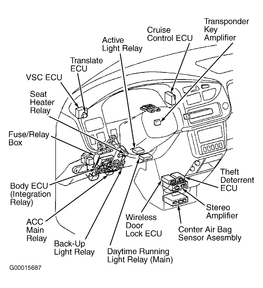 Fig 1: Locating Daytime Running Light Relay (Main) & Various Other Components