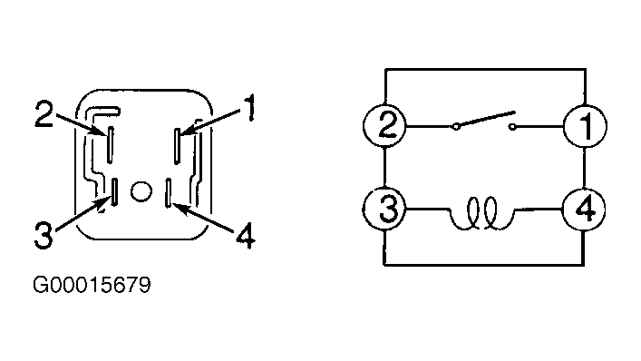 - Note identification of electrical terminals on daytime running light relay. See Fig 1. Using ohmmeter, check that no continuity exists between terminals No. 1 and 2 on daytime running light relay. Check that continuity exists between terminals No. 3 and 4 on daytime running light relay.