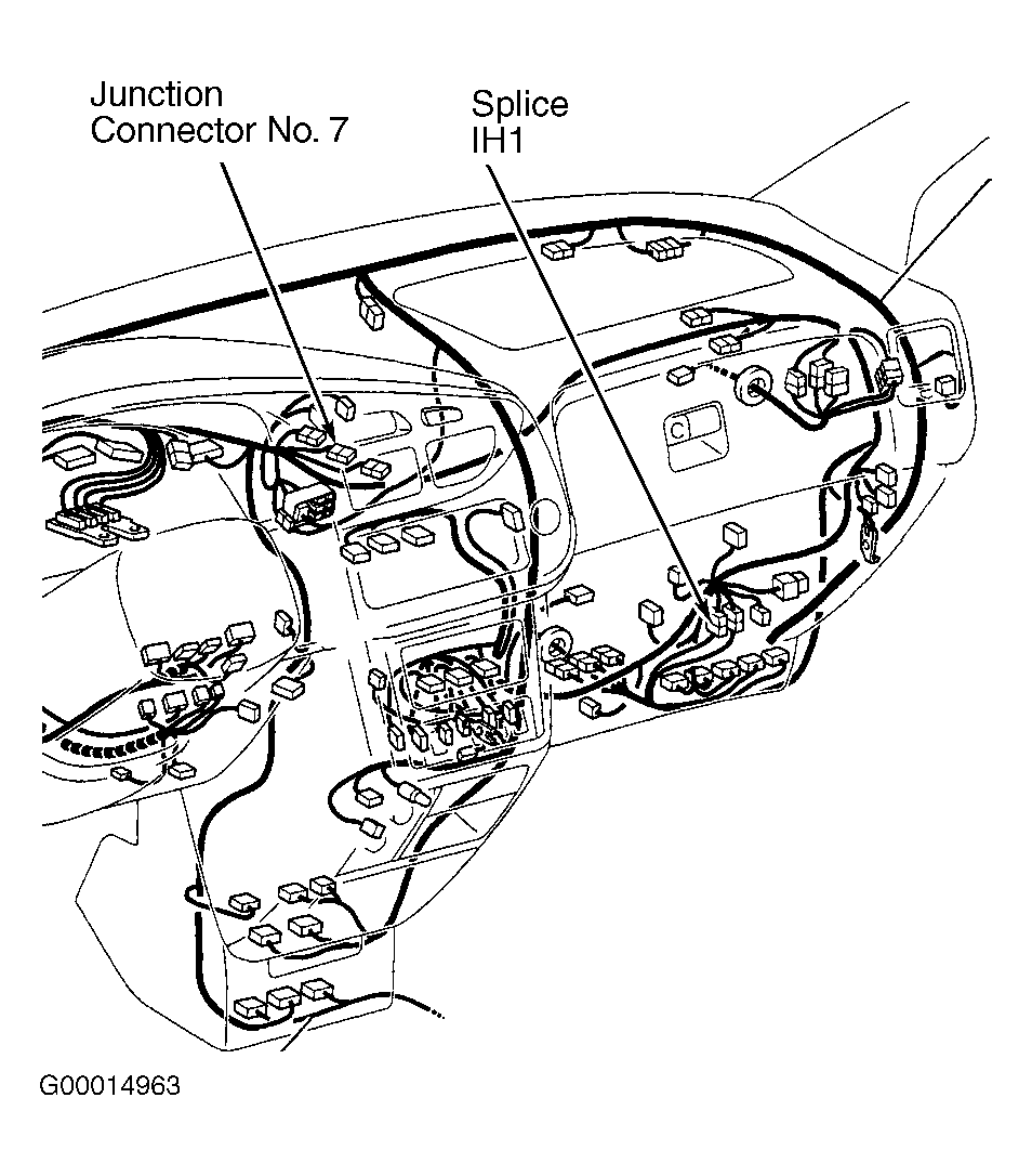 article. Park/neutral position switch is located on side of transaxle. For ECM electrical connector terminal identification, see Figure. It may be necessary to check Gray wire at junction connector No. 7 and splice IH1. Junction connector is located at center of instrument panel and splice IH1 is a Gray 13-pin connector located near front side of blower motor. See Fig 1.