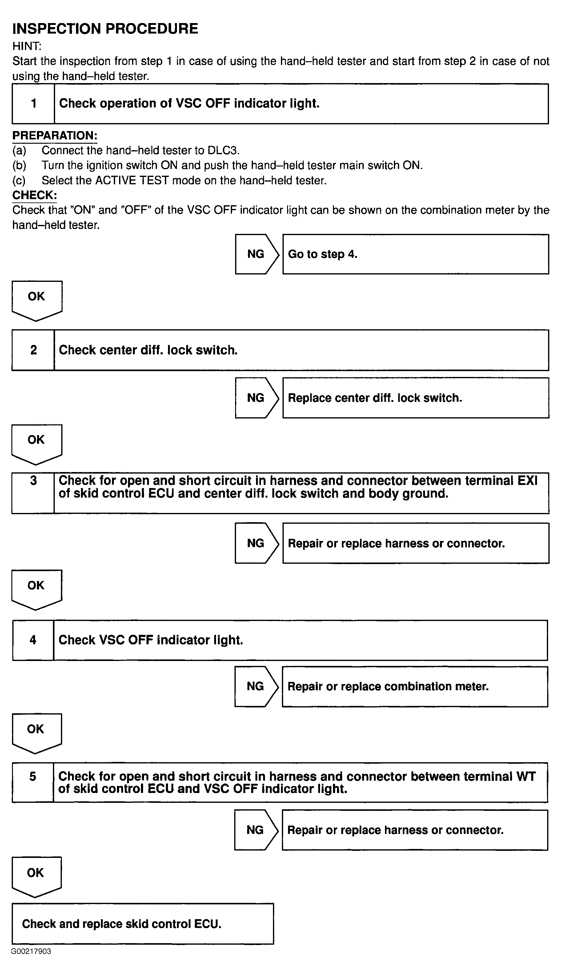 Fig 1: Testing Procedures Center Differential Lock & VSC Warning Light