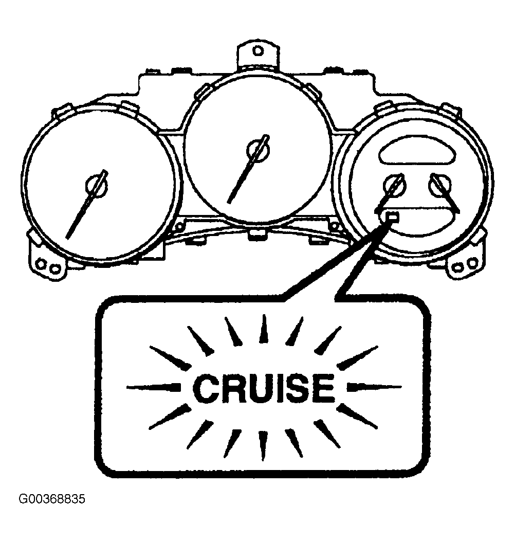 To operate the cruise control, press the "CRUISE ON-OFF " switch. See Figure. This turns the system on. The indicator light in the instrument panel shows that you can now set the vehicle at a desired cruising speed. See Figure. Another press will turn the system completely off.