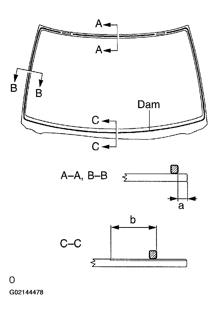 2. Install a new window glass adhesive dam as shown in Fig 7.