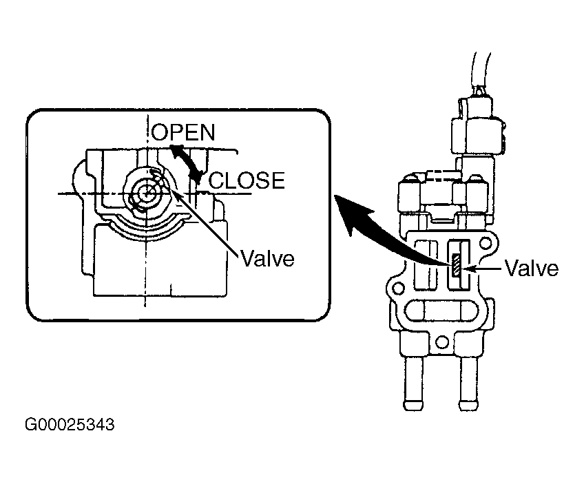 - On all models, turn ignition on. Check that valve on inside of IAC valve moves. Repeatedly disconnect and reconnect electrical connector for IAC valve several times while checking that valve on inside of IAC valve opens and closes. See Fig 2 and Fig 3
