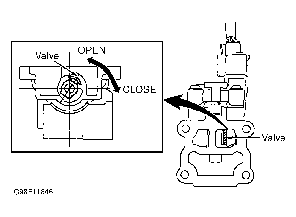 6. Turn ignition on. Check that valve on inside of IAC valve moves. Repeatedly disconnect and reconnect electrical connector for IAC valve several times while checking that valve on inside of IAC valve opens and closes. See Fig 2.