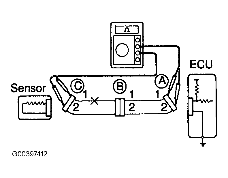 1. Disconnect connectors "A" and "C" and measure the resistance between them. In the case of Fig 10:
