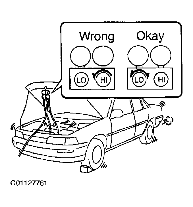 If the high pressure valve is opened, refrigerant flows in the reverse direction and could cause the charging cylinder to rupture, so open and close the only low pressure valve. See Fig 1.