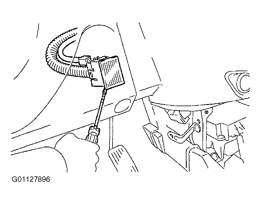 Using a screwdriver, pull out the sensor, then disconnect the connector and aspirator hose. See Fig 1.