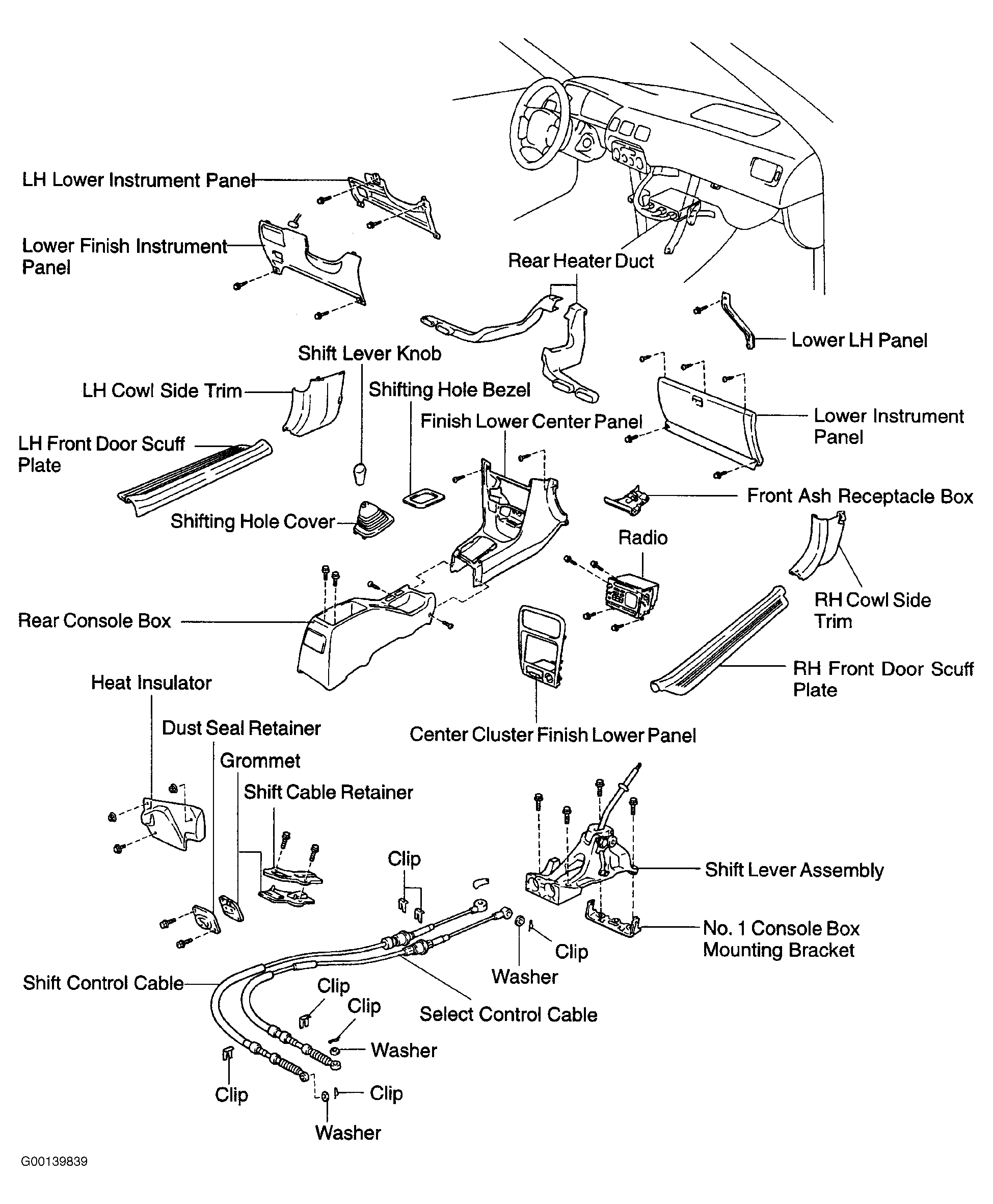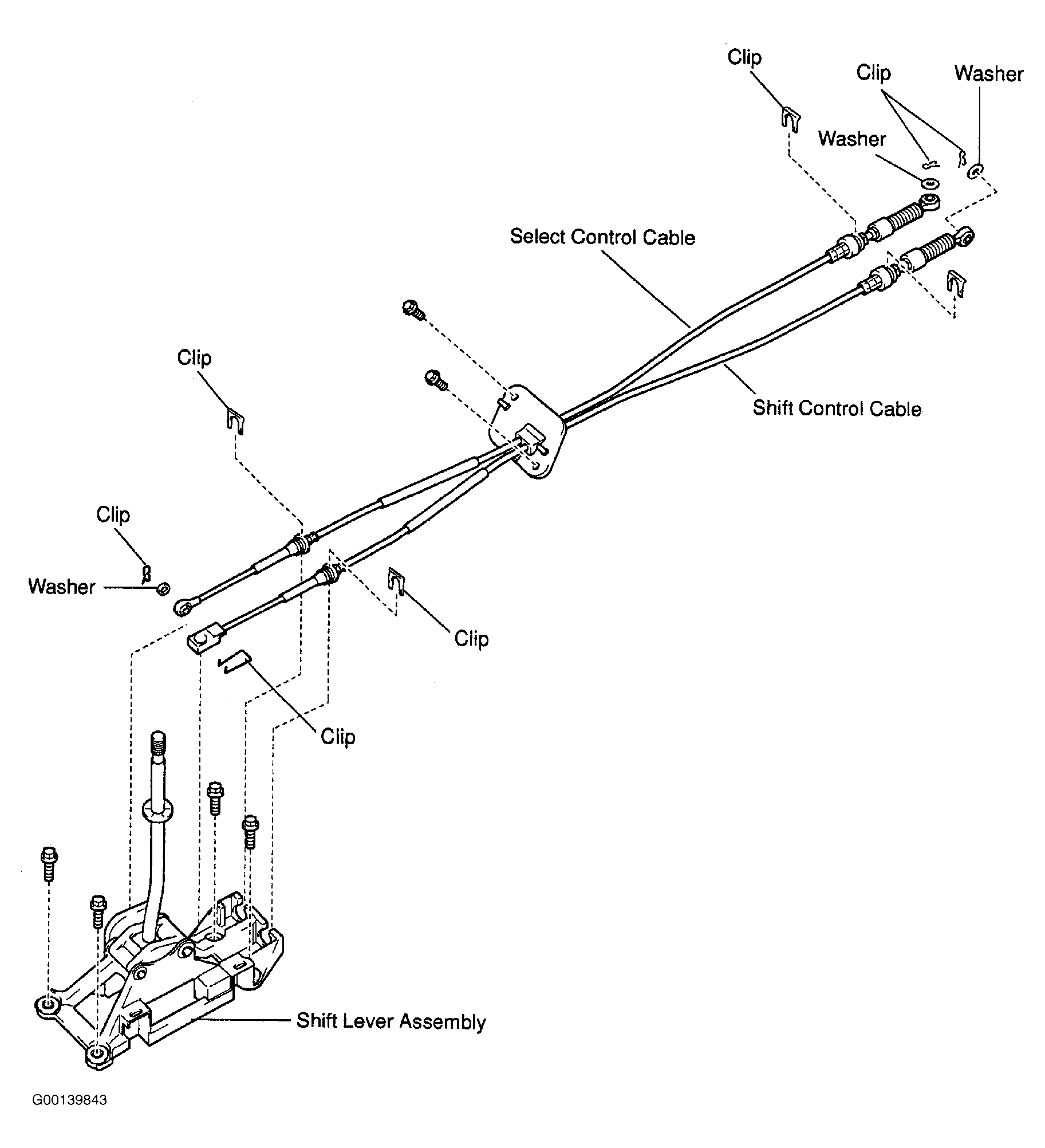 Manufacturer does not provide removal and installation procedure of shift control cable. Only an exploded view is given. See Fig 1-Fig 5