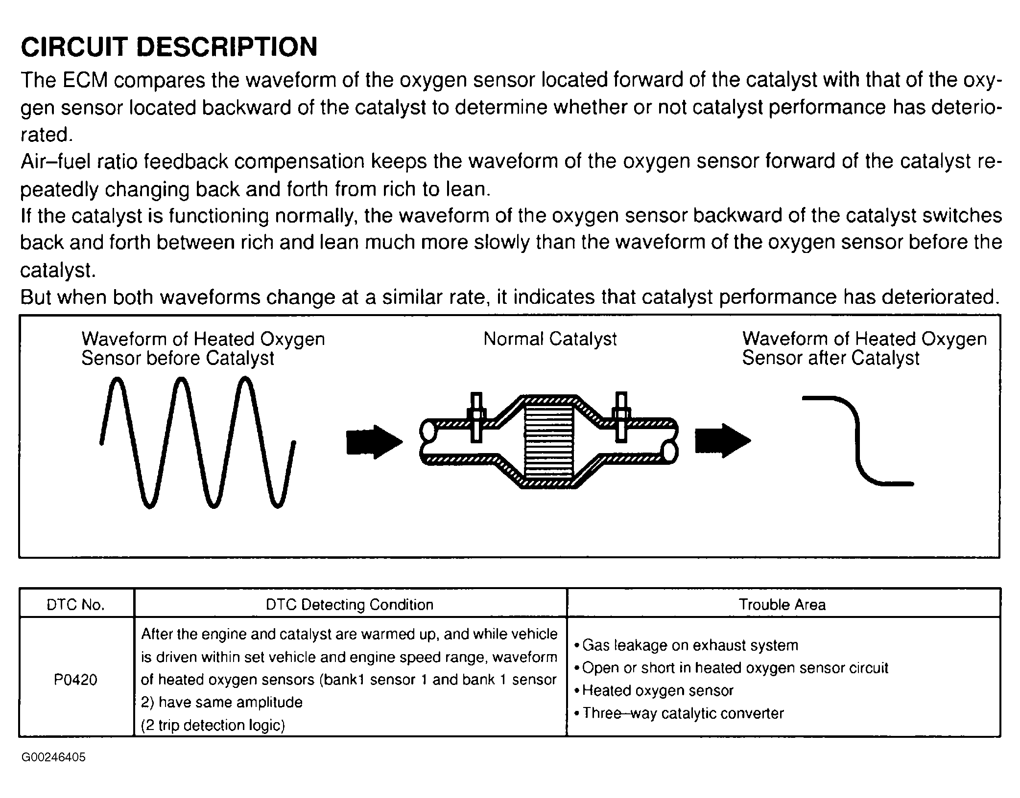 DTC P0420: Catalyst System Efficiency Below Threshold (Bank No. 1)